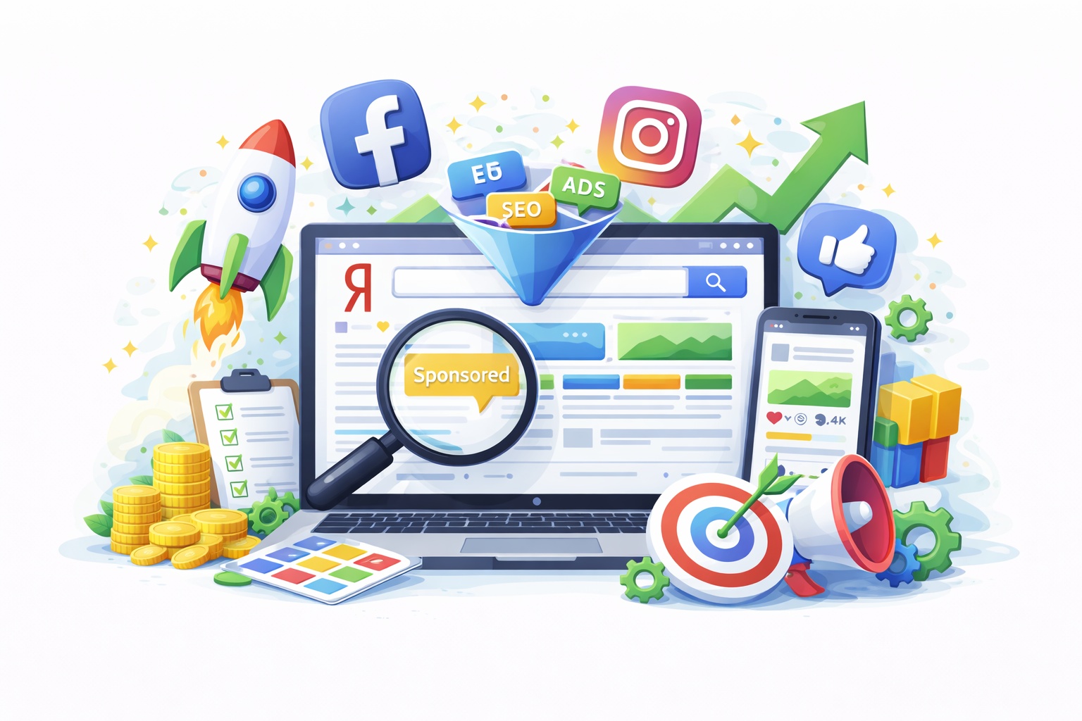 Перед началом продвижения проводится технический аудит сайта: проверяется индексация страниц, структура сайта, скорость загрузки, корректность метатегов и технические ошибки.